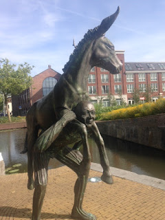 After trying to park in one place but couldn't pay because we didn't have the correct credit card, a merchant showed us where to park around the corner for free. A short walk and we were in the town square. The center of town is usually identified by a church and a town hall or guild hall. Gouda has both.